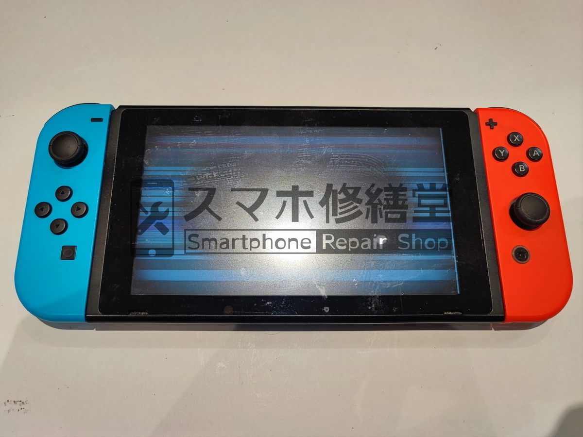 今回お預かりしたSwitchは画面にカラフルな横線が表示され、正常に映らなくなっています。